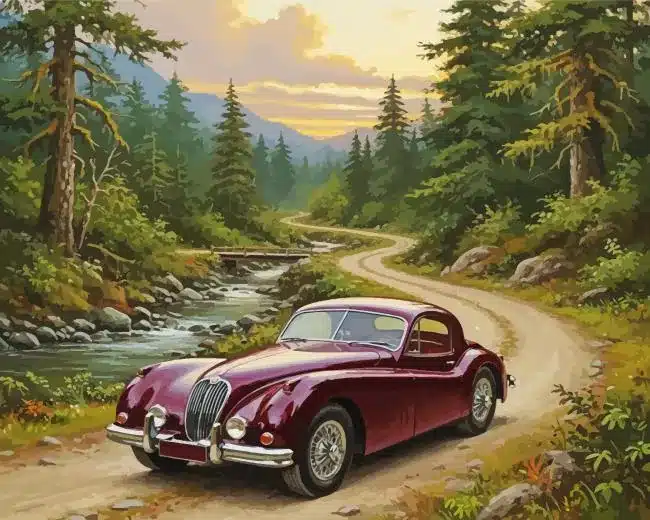 The Burgundy Jaguars Winding Road Paint by Numbers Is Your PERFECT Gift Choice For Any Occasion!